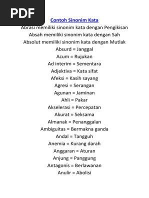 Contoh Kalimat Sinonim Dan Antonim Lengkap Dengan Artinya Docx