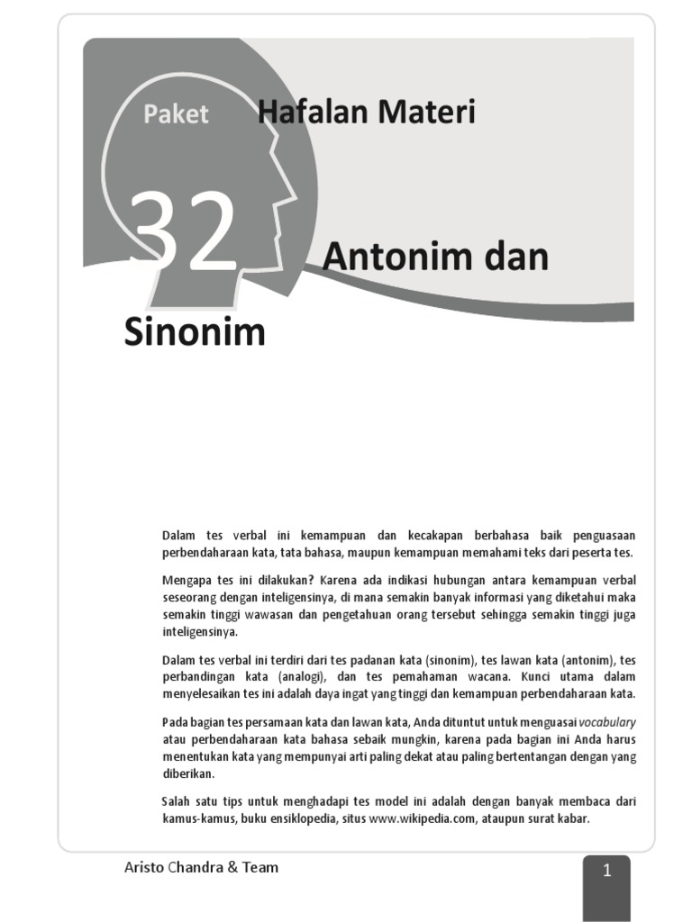 Sinonim Dan Antonim Kata Orang Tua