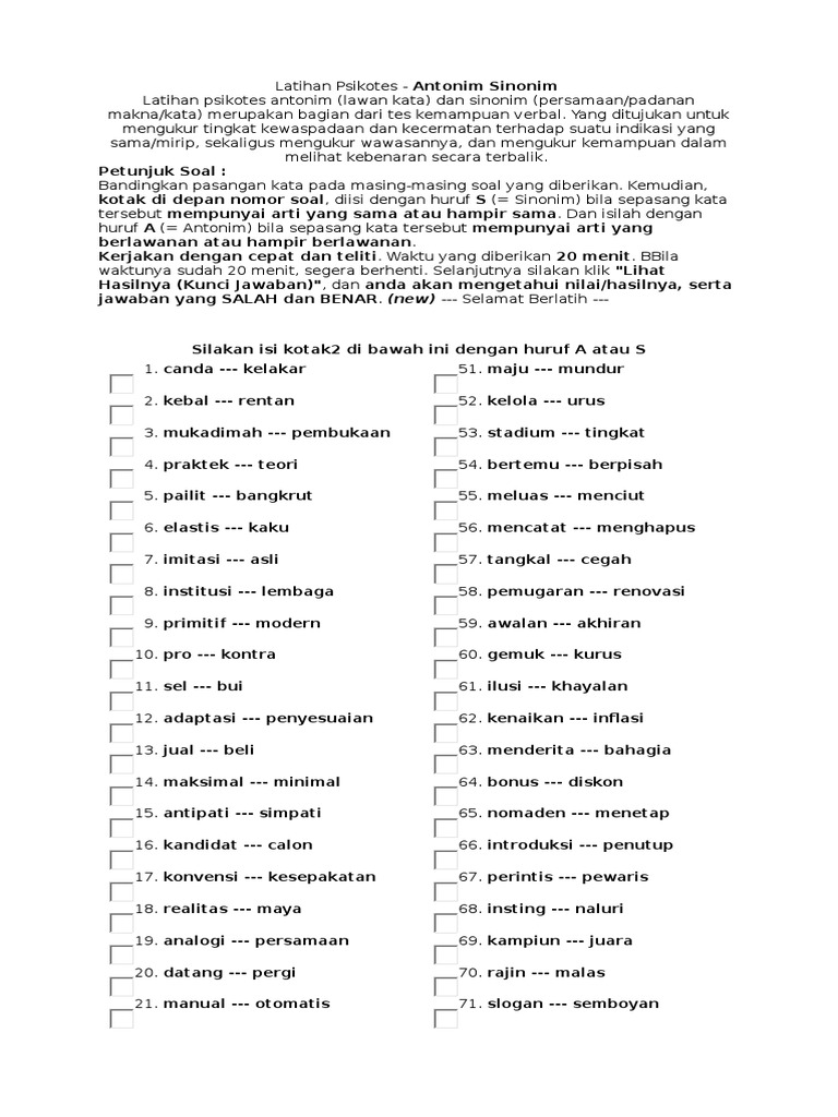 Berikan Antonim Dan Sinonim Dari Kata Tersebut 25 Cekatan