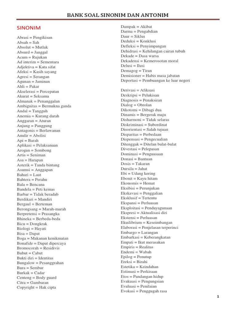 Pdf Hafalan Materi Antonim Dan Sinonim Sman110 Jakarta