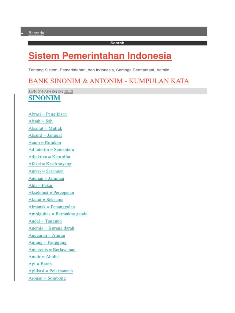 Bank Sinonim Antonim Kumpulan Kata Sistem Pemerintahan