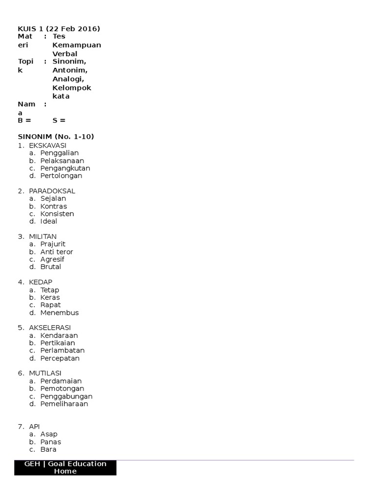 Pdf Hafalan Materi Antonim Dan Sinonim Sman110 Jakarta