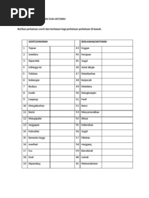 Antonim Pdf Latih Tubi Tatabahasa Antonim Antonim Ialah