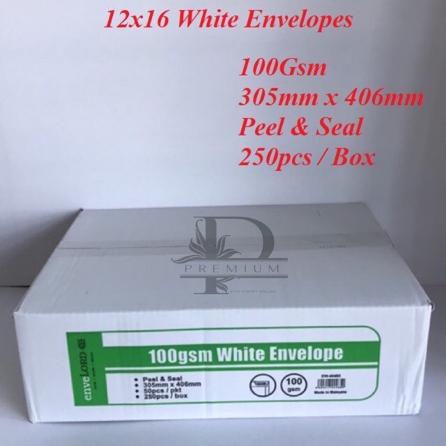 12 X 16 White Envelope 100gsm 250 S Peel Seal Sampul Surat
