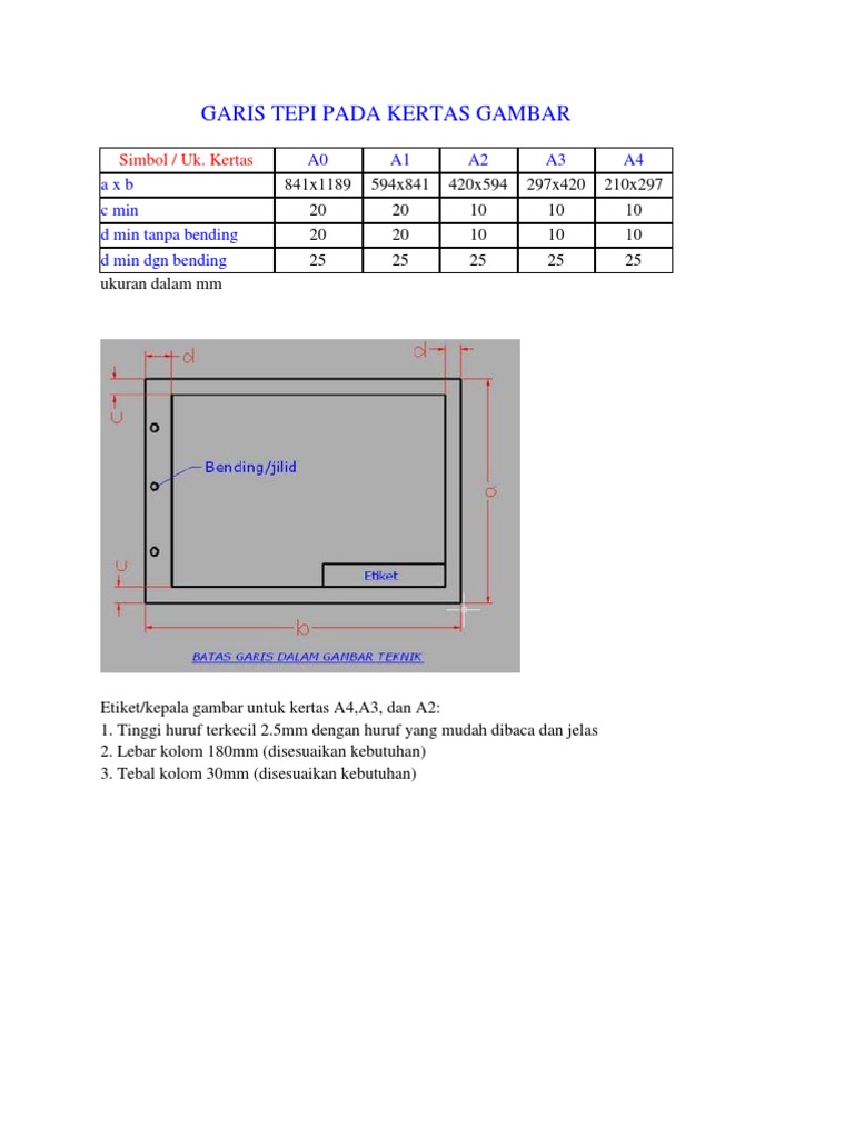 Ukuran Garis Tepi Kertas A3 Gambar Teknik